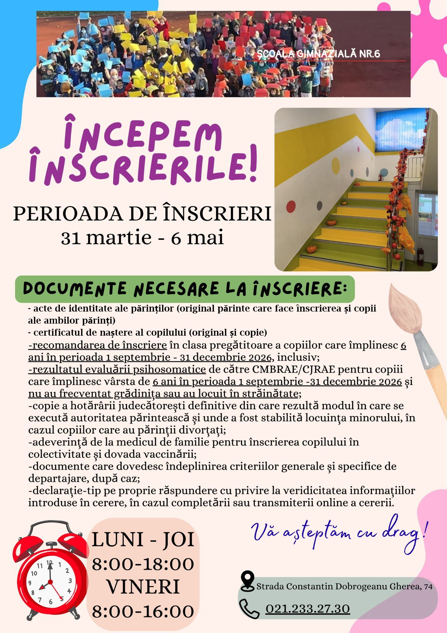 Vă așteptăm să ne vizitati pagina pentru înscrierea în clasa pregătitoare an școlar 2018-2019